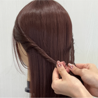 両サイドの毛をとって、ねじねじしながら後ろ側にもっていきます。