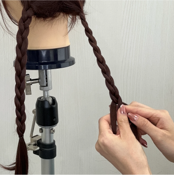 下側に残しておいた毛を2等分して、それぞれロープ編みします。