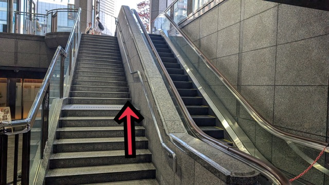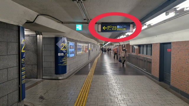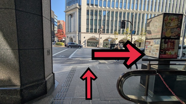 ④地上へ出たら右手へ進み、信号は渡らずに右へ曲がって進む。