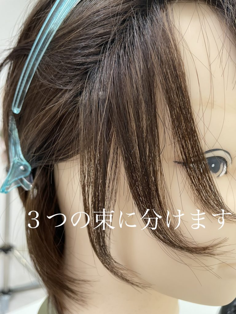 - 普通にサイドの髪を耳にかけてみて、耳より前に残る部分(もみあげになる部分)とそうでない部分を分ける