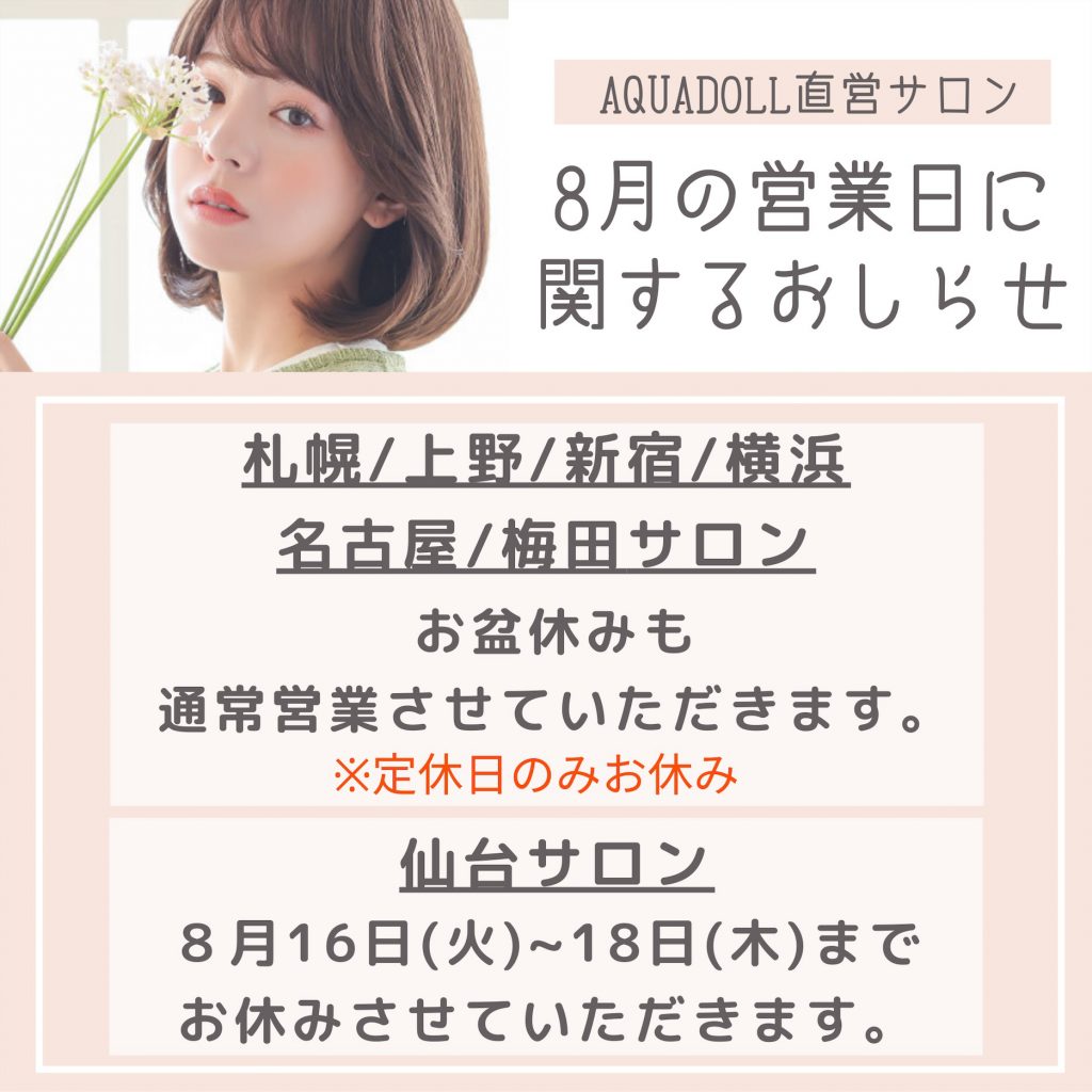 アクアドール直営サロンはお盆期間中も通常営業いたします![]()