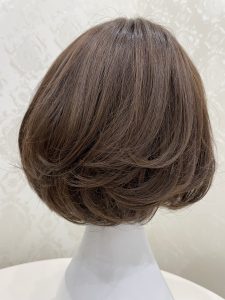 こんにちはアクアドール札幌サロンの佐藤です 今回ご紹介は、サロンオリジナルカットウィッグの エアリーボブです pwm00B CBRMショコラブラウン Mサイズ ¥71,800税込 毛先に入ったワンカールが弾…