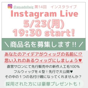 / あなたがウィッグの名づけ親に!? インスタライブ開催決定♥ \ こんにちは!アクアドール梅田サロンです 5月23日(月)の19:30~、 アクアドール直営サロンのinstagramアカウント(aquadollwig)…
