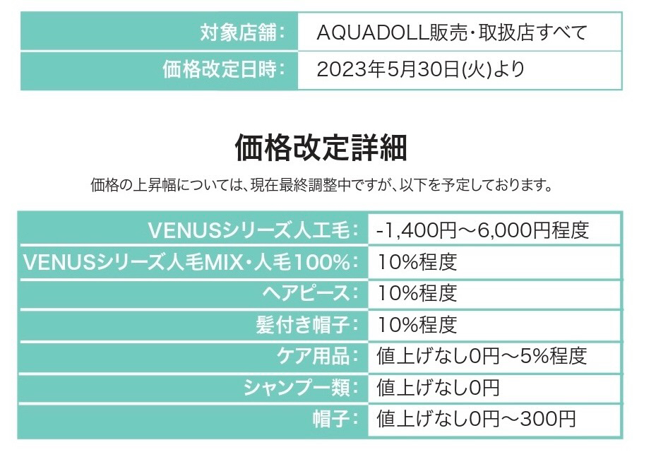 いつもAQUADOLLをご愛用いただき、誠にありがとうございます。